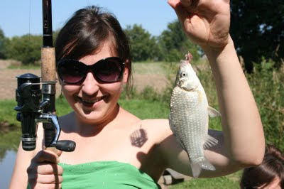 W niedzielne przedpołudnie zawitaliśmy nad stawy w miejscowości Wieniec. Nim jeszcze wszyscy rozłożyli wędki Iga złowiła swojego pierwszego karpia